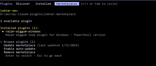 Select your marketplace and you should see your plugin ready to install